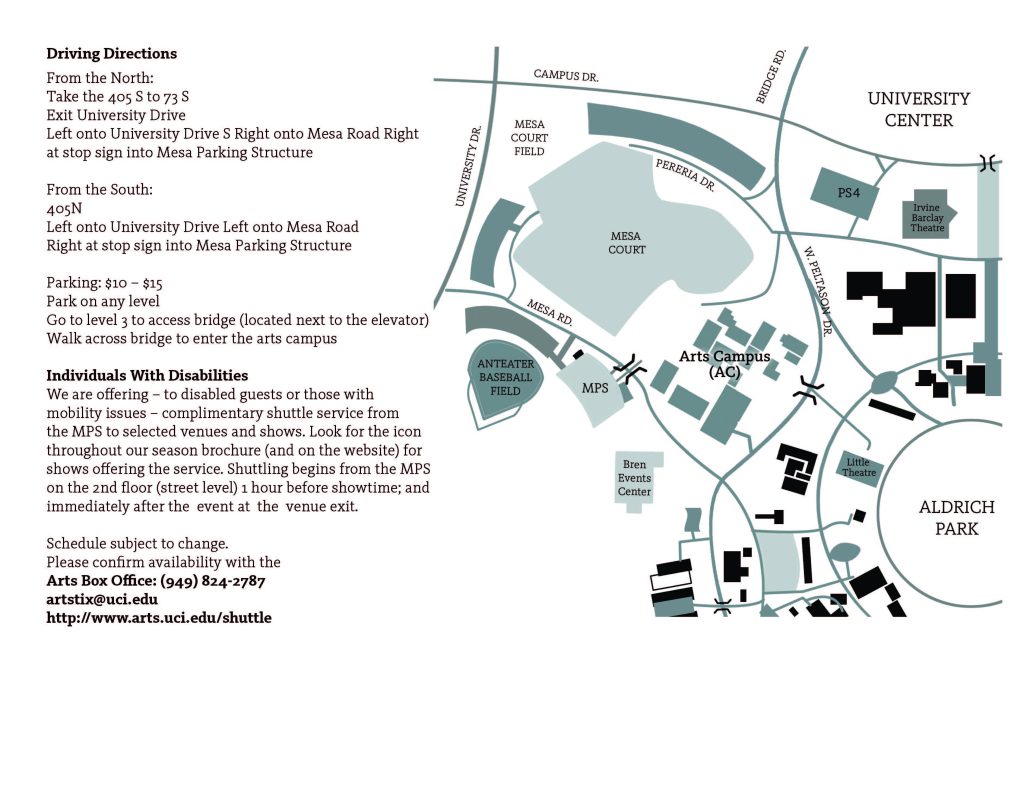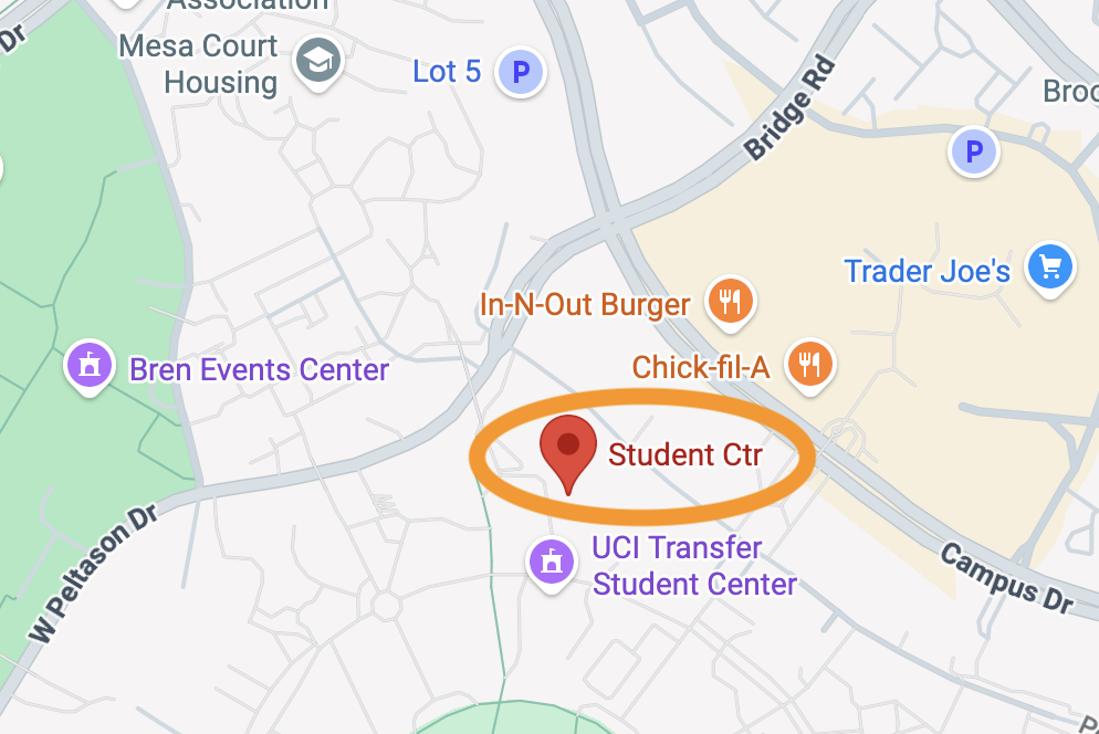- If you are unsure about parking or need a permit in advance, feel free to reach out to UCI Transportation Services at parking@uci.edu or consult the interactive campus parking map online.